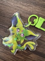 2" double sided epoxy coated acrylic keychain. Same image on both sides.