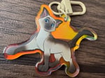 2" double sided epoxy coated acrylic keychain. Same image on both sides. Has a rainbow lighting effect so the colors vary with different angles! Beige clasp.
